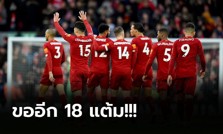 ซึ่งในฤดูกาลนี้ลูกทีมของ เยอร์เก้น คล็อปป์ ทำผลงานได้อย่างยอดเยี่ยม ด้วยการชนะ 24 นัด จาก 25 เกมในลีก โดยพลาดเสมอเพียงแค่เกมเดียว เก็บไปได้ถึง 73 คะแนนถึงเวลานี้พวกเขามีแต้มเหนือ “เรือใบสีฟ้า” แมนเชสเตอร์ ซิตี้ คู่ปรับอันดับ 2 อยู่ถึง 22 คะแนน หลังการแข่งขันผ่านไปแล้ว 25 เกม นั่นเท่ากับว่าหาก 6 นัดต่อจากนี้ ลิเวอร์พูล สามารถคว้าชัยได้หมดจะการันตีแชมป์ทันที